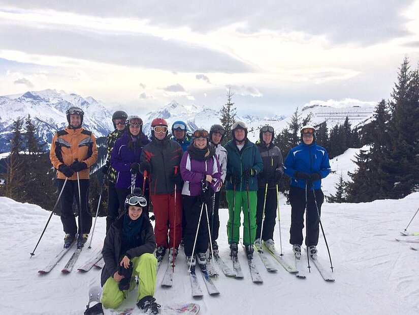 Wird gefeiert und gelacht, das Skifahren das hat Spaß gemacht!"